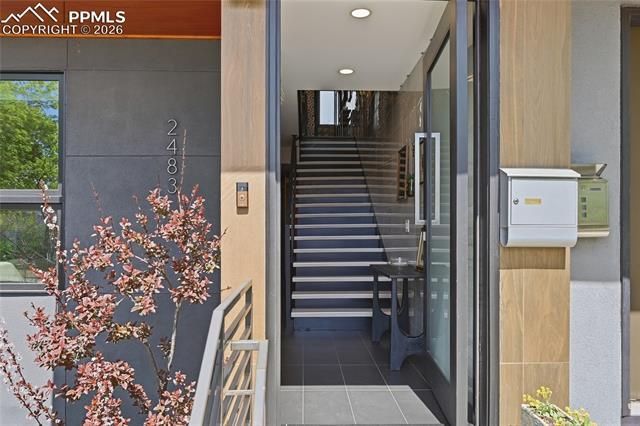 A rare offering in the heart of LoHi, this architecturally reimagined home is like no other and has been crafted for the discerning buyer who demands design, quality, and individuality. Though part of a quadplex, this home lives entirely apart, offering a level of elevated finishes and customization rarely seen in attached living with No HOA. Entry begins with a striking artisan-crafted Pivot door, opening to a meticulously designed level with designer tilework, a private guest suite, en-suite bath, and laundry. The home unfolds as a curated architectural experience. A dramatic staircase clad in designer tile and framed by custom metal railings and glass balustrades creates a sculptural focal point—an interplay of texture, light, and modern design. The main level offers a refined, light-filled living space with hardwood floors and tilework from Ann Sacks, Porcelanosa & The Tile Store and flows to a private Australian teak terrace. The gourmet kitchen features Sub-Zero, Wolf, and Cove stainless appliances, cabinetry from Concept 32, a quartzite waterfall island, wine refrigeration, and a dedicated ice maker. Upstairs, a dramatic skylight fills the stairway with natural light, leading to the primary suite—a serene private retreat defined by a custom glass wall and spa-caliber bath with steam shower, Kohler soaking tub, and private room with smart toilet. A private rooftop deck showcases expansive views and city lights, offering an extraordinary setting to savor above the city. The finished garden-level residence offers flexibility for guests, multigenerational living, or income potential, complete with a designer-curated kitchen and bright bedroom with spa-inspired en-suite. Additional features include Marvin windows with stone sills, whole-home Sonos audio, multi-zone climate control, tankless water heater, and a finished two-car garage. This residence is a true statement home in one of Denver’s most dynamic and sought-after neighborhoods.