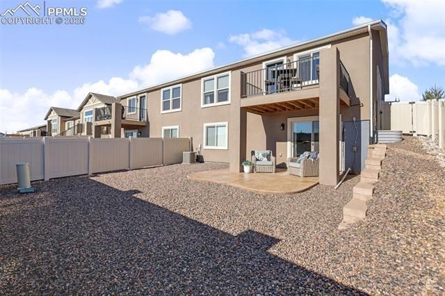 Welcome to this impeccably maintained 3-bedroom, 3-bath patio home offering comfort, quality, and low-maintenance living in a highly desirable community. From the moment you enter, you’ll notice the beautiful luxury vinyl plank flooring that flows seamlessly from the entry through the living room and into the kitchen, creating a clean and cohesive feel throughout the main living space. The living room is warm and inviting, filled with natural light and anchored by a gas fireplace with a striking stone surround—perfect for relaxing evenings or gathering with guests. The kitchen blends style and function with granite countertops, stainless steel appliances, a pantry, an island with seating, and ample cabinetry, along with easy access to the deck for effortless indoor-outdoor living. The main-level primary suite offers a comfortable retreat with a spacious walk-in closet and a well-appointed en-suite bath featuring a walk-in shower and granite countertops, while a full bath and conveniently located laundry area add everyday practicality. The walk-out basement expands your living space with a generous family room and wet bar, two additional bedrooms, a full bath, and ample storage. Step outside to enjoy a private yard with no neighbors directly behind—ideal for relaxing on the east-facing stamped concrete patio and taking in the Colorado sunrises. The exterior features a timeless combination of stucco and stone, complemented by a covered patio and a new roof installed in 2024 for added peace of mind. Enjoy a truly low-maintenance lifestyle with an HOA that handles exterior upkeep, snow removal, trash service, and the maintenance of common green spaces, including a park and walking paths, all with easy access to schools, parks, shopping, the Powers Corridor, and nearby military bases—truly move-in ready.